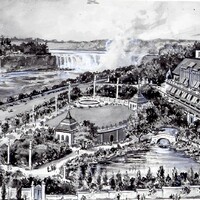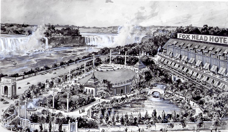 - Artist's rendering of Foxhead Hotel, Oakes Garden, American Falls & Horseshoe Falls