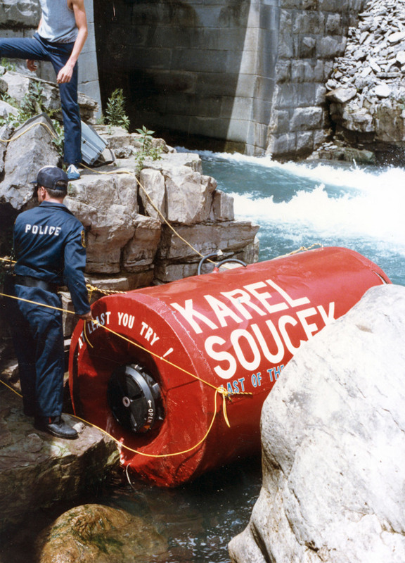- retrieving the barrel are Ed Breski Niagara Parks Police dispatcher and Dan Hill grandson of Red Hill Sr.