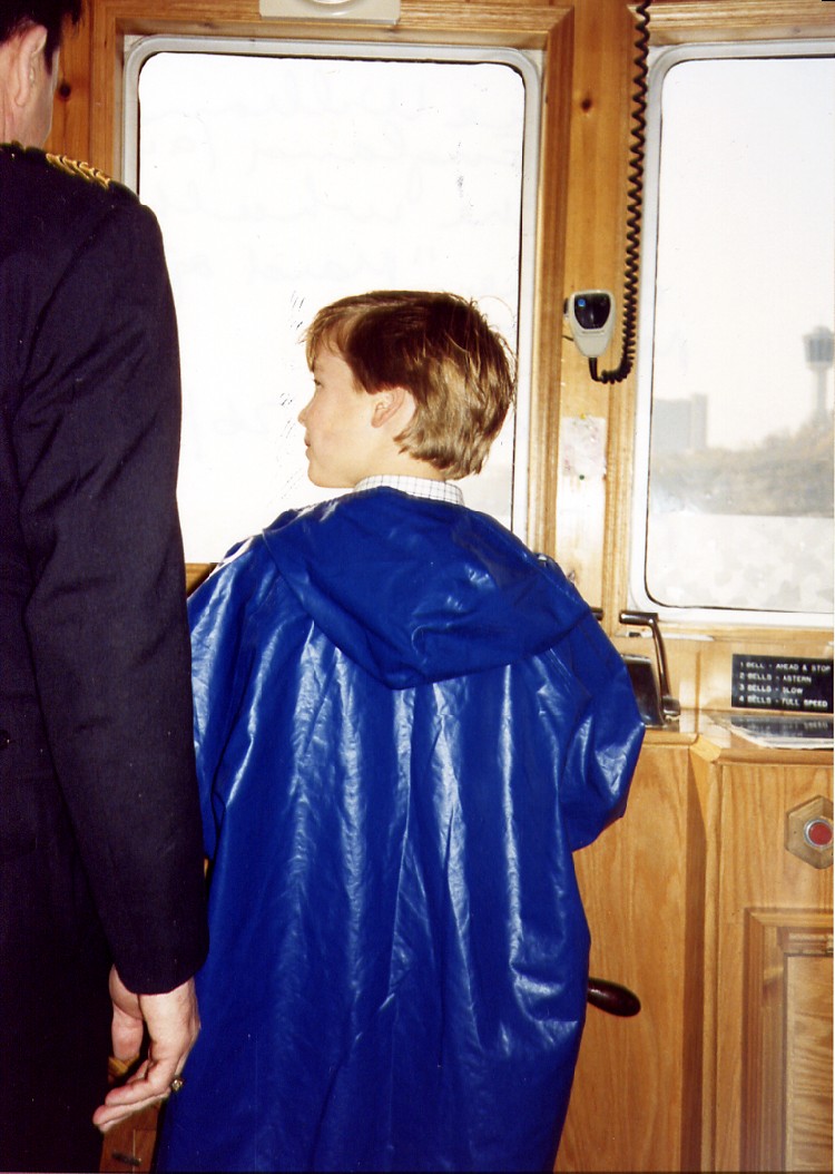 Prince William in the wheelhouse of the Maid of the Mist IV
