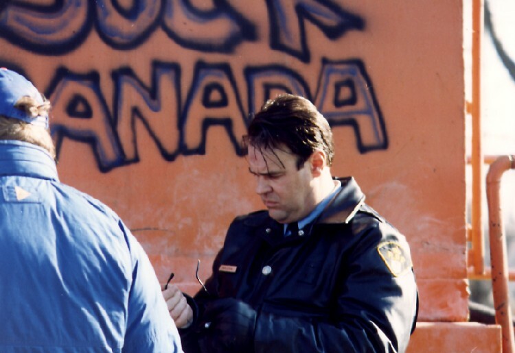 - Dan Aykroyd during filming of Canadian Bacon at Niagara Falls