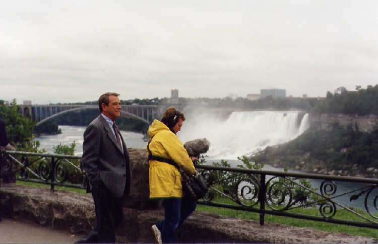 Actor Richard Crenna filming the CBS movie of the week Wallflower at Niagara Falls