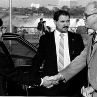 - Prince Naruhito of Japan visiting Niagara Falls, Rainbow Bridge & American Falls also visible