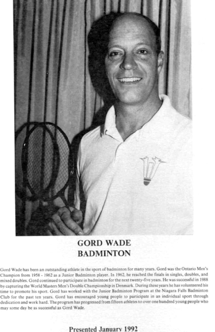 - Niagara Falls Sports Wall of Fame - Gord Wade Athlete Badminton