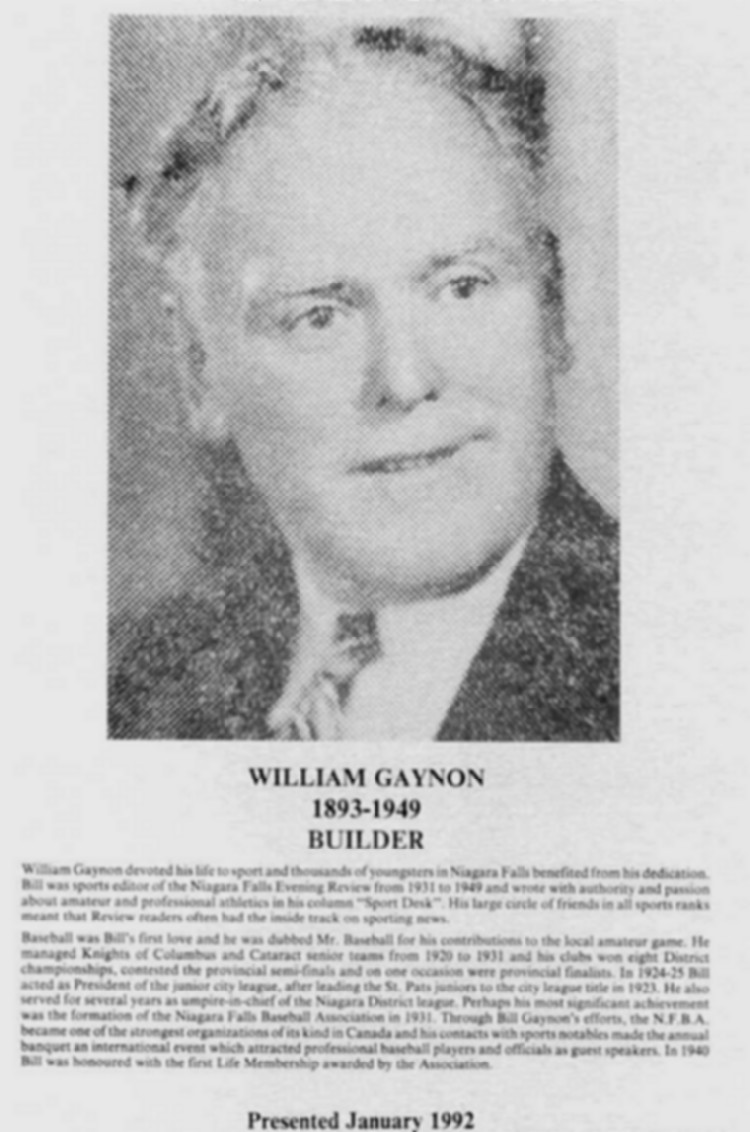 Niagara Falls Sports Wall of Fame - William Gaynon 1893 - 1949 Builder era 1900 - 1950