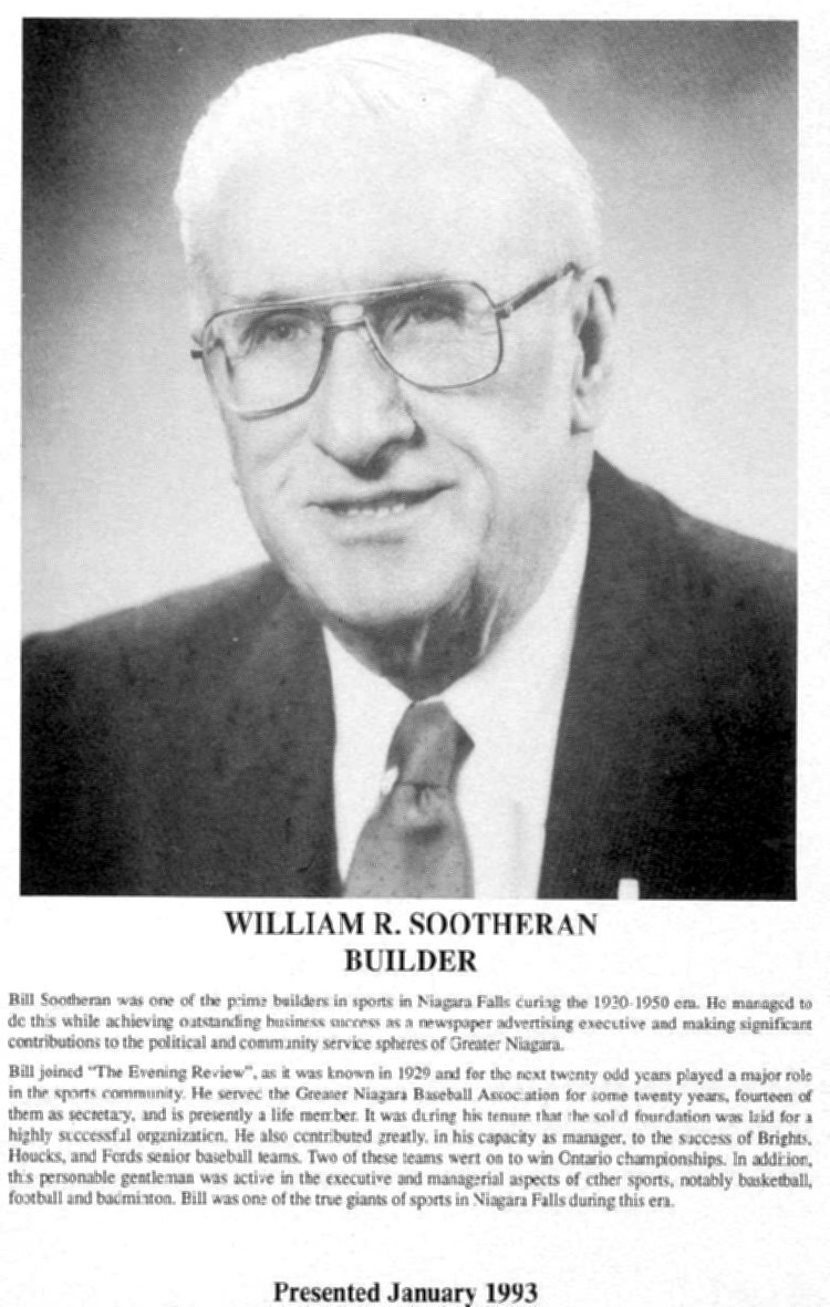 - Niagara Falls Sports Wall of Fame - William R (Bill) Sootheran Builder era 1931 - 1950