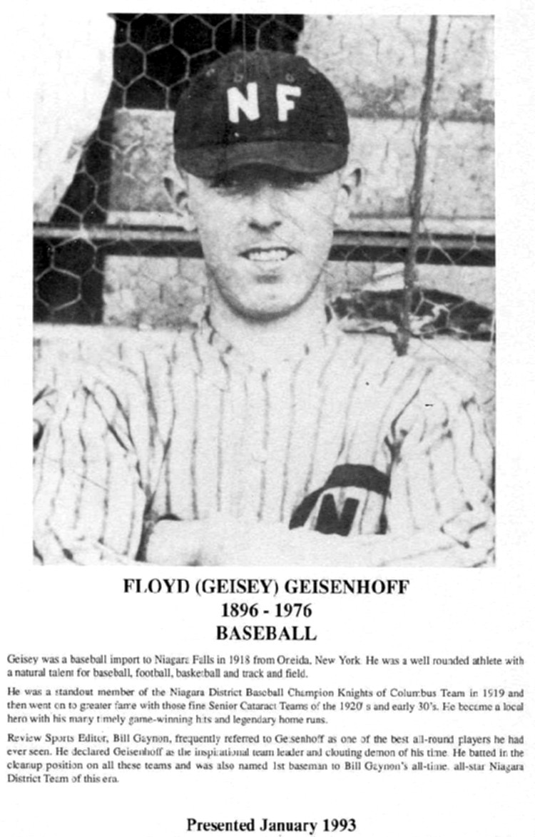 - Niagara Falls Sports Wall of Fame - Floyd (Geisey) Geisenhoff 1896 - 1976 Baseball era 1900 - 1930