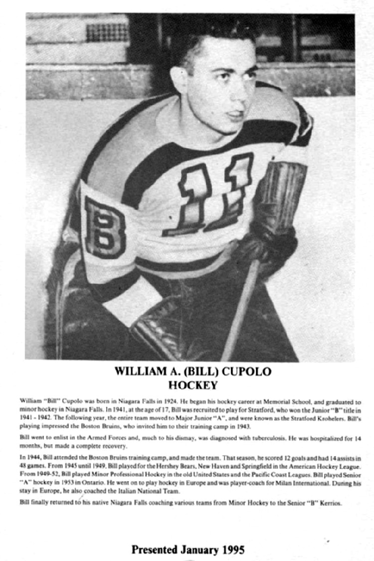 Niagara Falls Sports Wall of Fame - William A (Bill) Cupolo Athlete Hockey era 1931 - 1950
