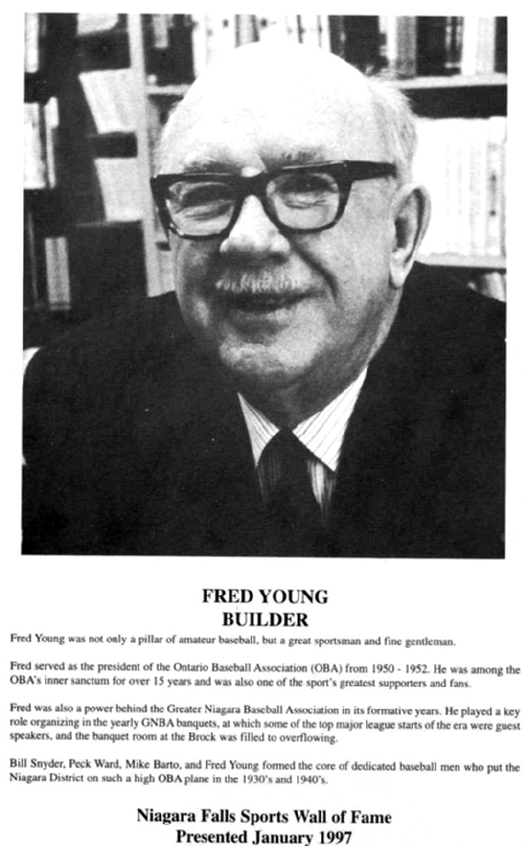 - Niagara Falls Sports Wall of Fame - Fred Young Builder Baseball era 1931 - 1950