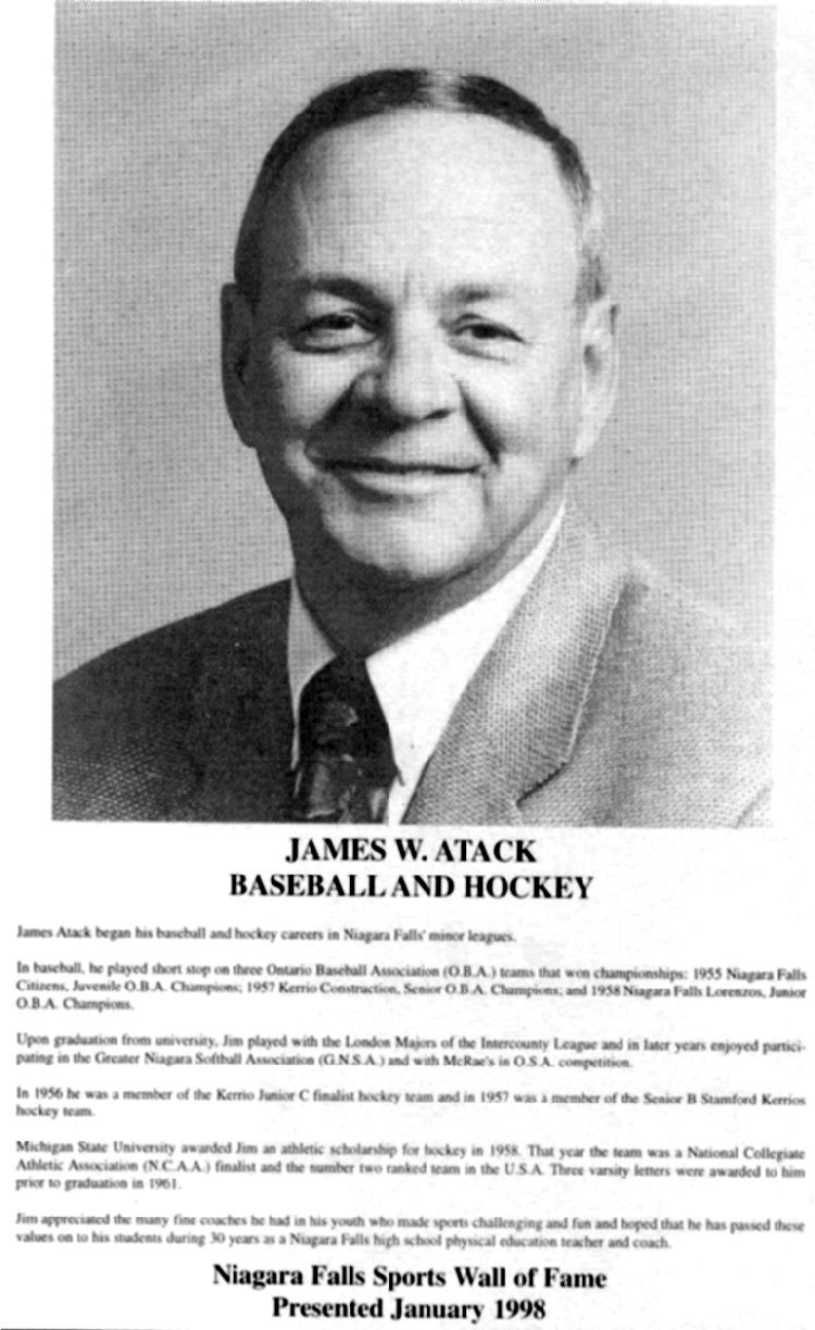 Niagara Falls Sports Wall of Fame - James W Atack Athlete Baseball & Hockey