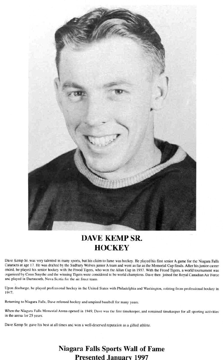 Niagara Falls Sports Wall of Fame Dave Kemp Sr Athlete Hockey era 1931 1950
