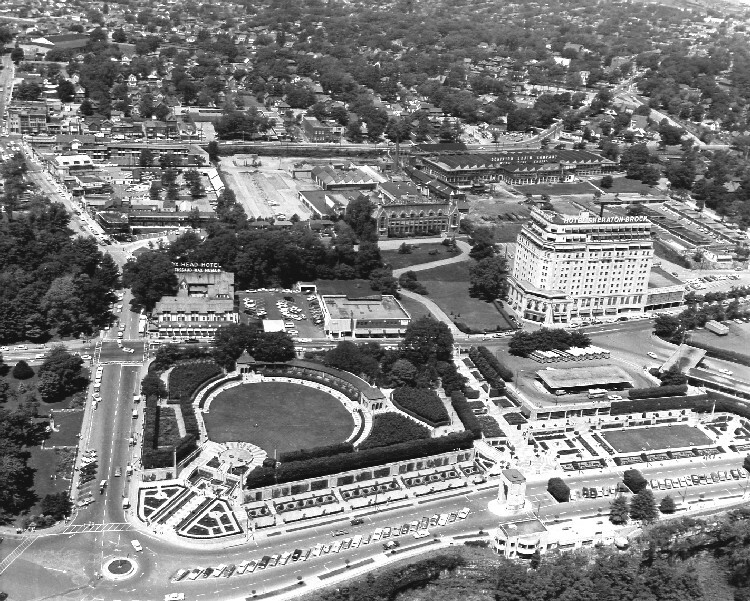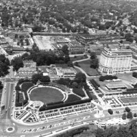 Aerial view Oakes Garden Theatre, Sheraton Brock and Foxhead Hotels and Dominion Chain Company