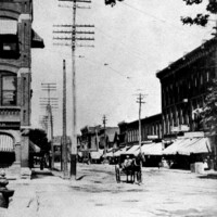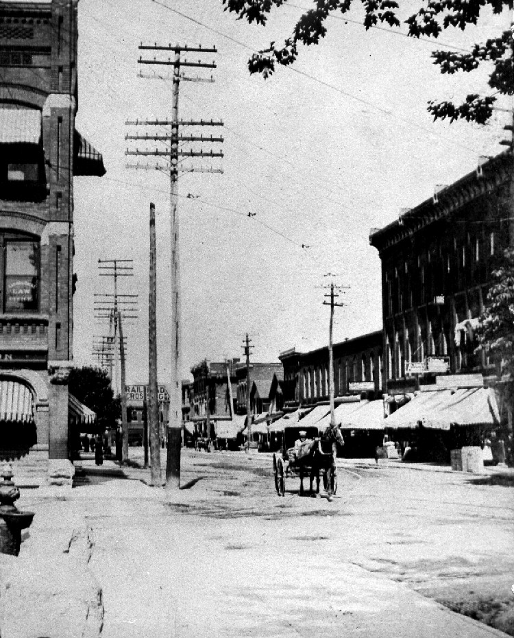 Erie Avenue at the junction of Queen Street early 1900s, Lundy Block including library to right