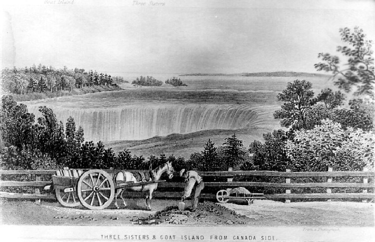 - Artist's sketch of Three Sisters and Goat Island -Island - Niagara River