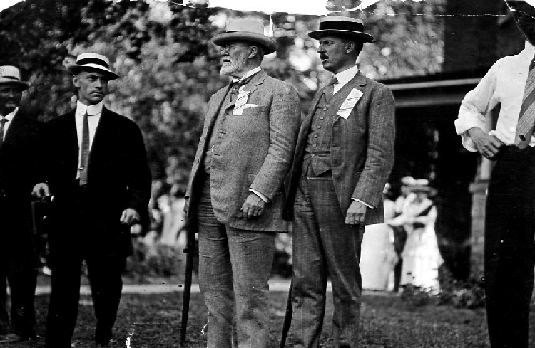 - Sir John Gibson third from left and his secretary Major Caldwell fourth from left reviewing troops