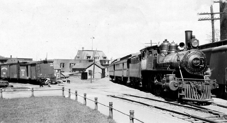 1915 view of a Michigan Central train at crossing on lower Queen St