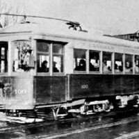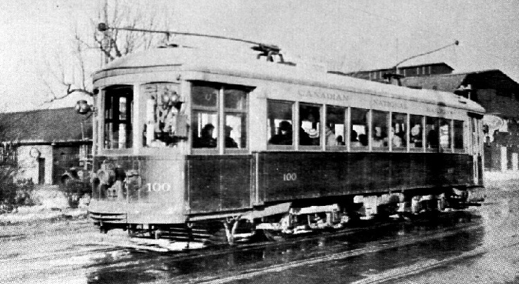 Streetcar number 100 outside Niagara Falls Arena December 28 1945