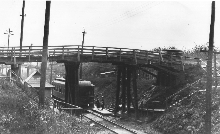 - NS&T streetcar stopping at Stamford Station, Drummond Rd to pick up passengers
