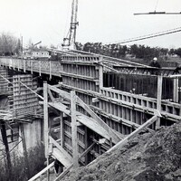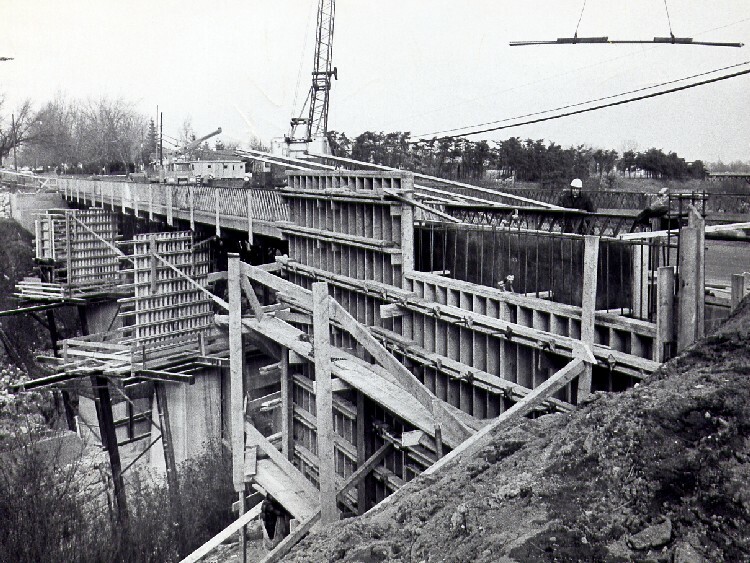 Construction crew working on the widening of Drummond Rd Bridge 1972