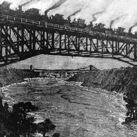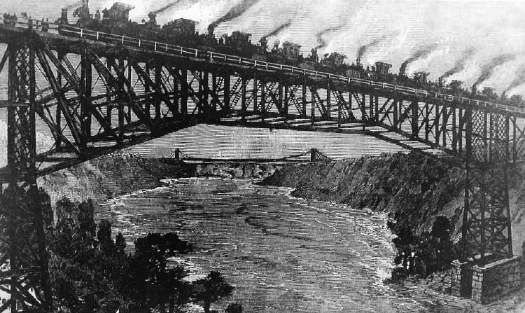 - en-CA When the famous Cantilever Bridge was opened over the Niagara River in 1883, 22 Locomotives Hauling 22 loaded gravel cars steamed across to test its strength while a trailroad of excursionists looked on