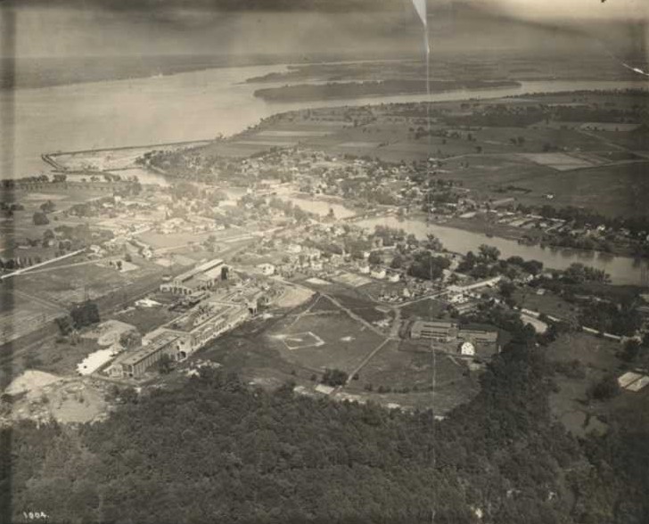 - An aerial view of the city of Chippawa and the Upper Niagara River