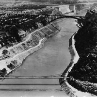 - Aerial view of the Lewiston-Queenston Suspension and Arch Bridges