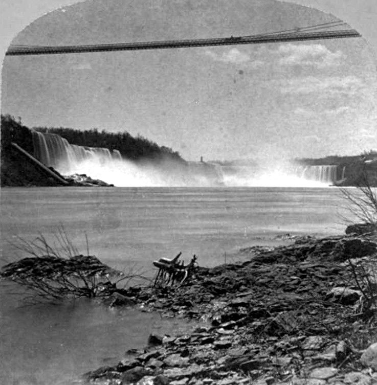 - American and Horseshoe Falls, with the New Fallsview Upper Suspension Bridge