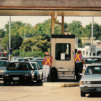 Rainbow Bridge Canada Customs - Niagara Falls Museum in background
