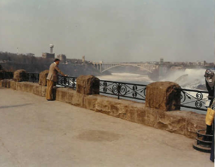 - Looking over the Railing into the Niagara Gorge with the Rainbow Bridge in the Background