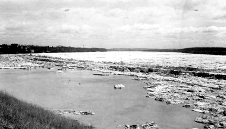 Lower Niagara River covered in ice, as viewed from North of the Queenston Dock