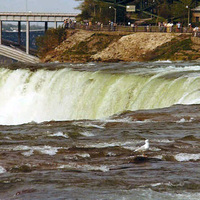 Niagara Falls - Brink of American Falls with Rainbow Bridge in the Background