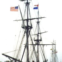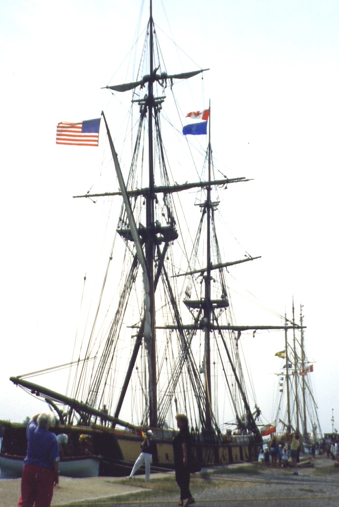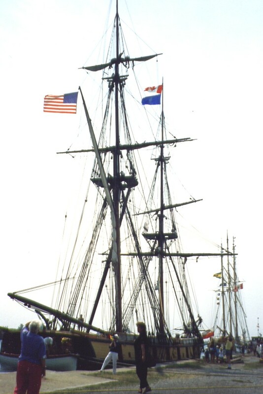 Welland Ship Canal - Tall ship U. S. Rose Port Colborne docked at west side wall