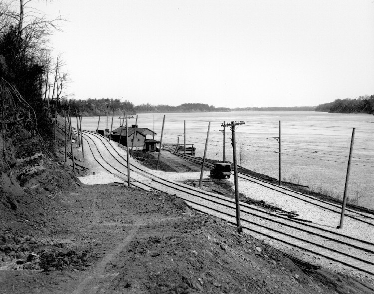 - Electric railway tracks at Queenston Dock looking north toward Lake Ontario