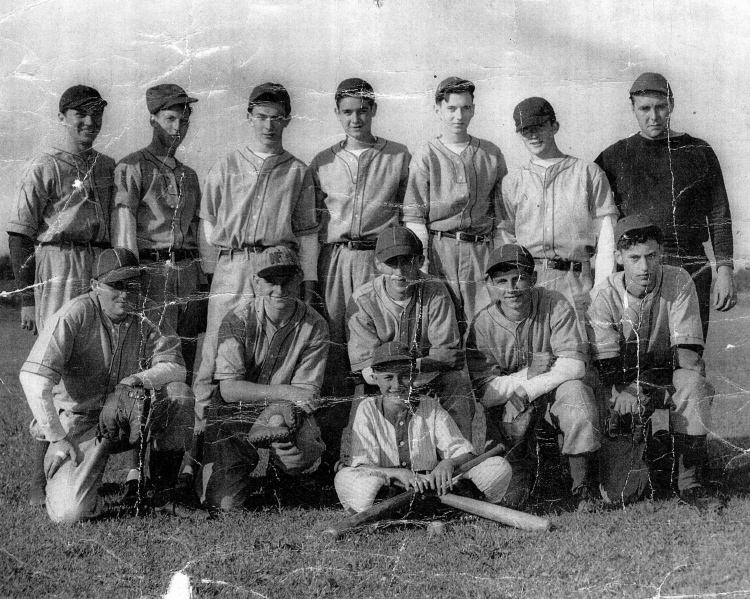 - Back Row: Walt Moroze, Bill Heximer, Steve Fellinger, Larry Allen, Tom Littlewood, Charlie Kohnle, George Rowe; Front Row: Unknown, Steve Holidensky, Bob Pirson, Mickey Derhodge, Frank Folmslee; Boy in Front: Jackie Fellinger