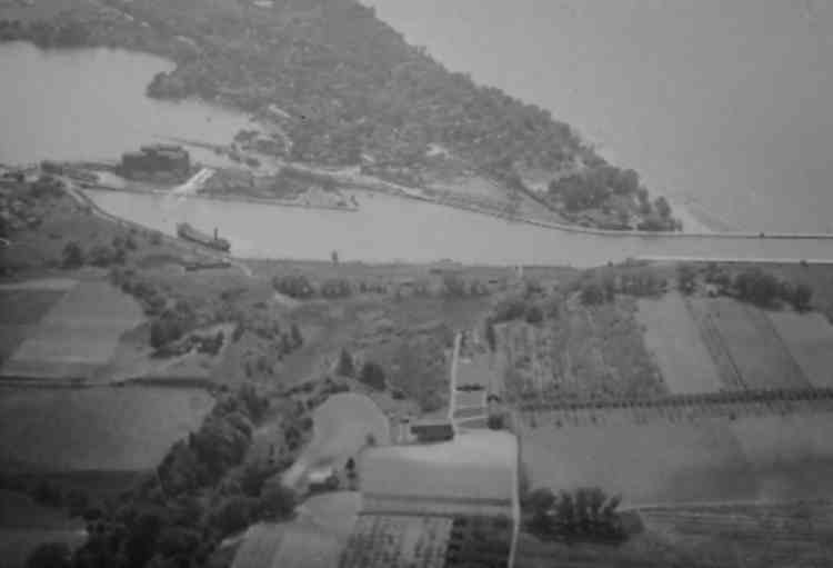 en-CA This was the Northern end of the first three canals. On the near side is lock No., 3rd canal, 1870-1930. To the far side is lock 1, 2nd canal, 1844-1870 (approx.). On the Piont is Lake Side Park