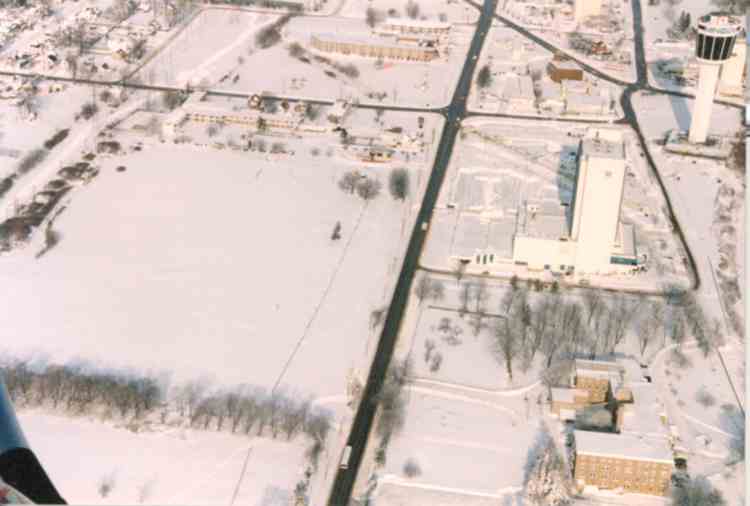 An aerial view of Niagara Falls, Ontario in the Winter of 1996