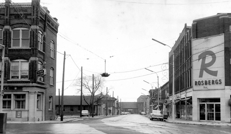 Rosbergs Department Store Ltd. Niagara Falls - looking down Erie Avenue Towards Bridge Street Train Station