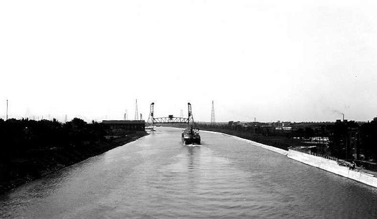 - Welland Ship Canal - Ship about to pass under a lift bridge