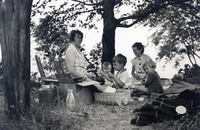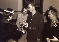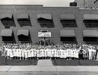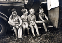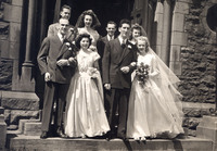 Front Left to Right: ?, Betty Muisiner, Robert Burgess, Molly Muisiner Back Left to Right: Ken Muisiner, ?, Robert Christopher, ?. Front steps of St. Patrick's Church, Niagara Falls