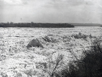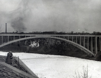 Remains of the Schoellkopf Power Station on the American side of the Niagara River, slightly downstream from the Rainbow Bridge. It collapsed into the Niagara River on June 7, 1956