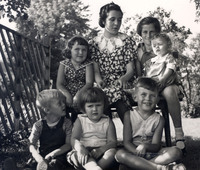 Front Left to Right: Roderick Stewart, Winnifred Combe, Donald Combe Back Left to Right: Joyce Combe, Marjory Montgomery, Mildred Montgomery, David Stewart