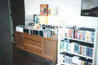 Niagara Falls Public Library, Victoria Avenue - Adult Area - Audiovisual Services Videotapes are played here, and talking books shelved and checked after circulation. Talking book collection needs development to meet demands, and more space must be found for it in 1989. A limited amount of shelving is available just above the area shown. -