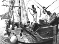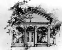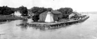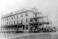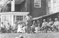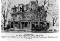 Three men on left: unknown; man standing: Mr. Joseph Wells; 2 girls are: Elizabeth & Jemmie Lewis; lady: Mrs. Jabey Lewis; boy on right: Jabey Lewis Jr. ;