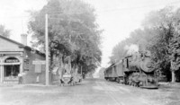 Streetcar & Station on right ; the four large smokestacks in the extreme background belong to the Aluminum Company of America , formerly known as the Pittsburg Reduction Company ;