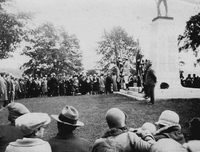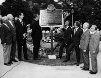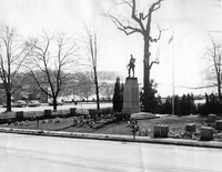 Located on St. David's Hill, this monument serves to indicate the former home of Sir Peregrine Maitland, Lieutenant-Governor of Upper Canada in the early 1800s (appointed in January of 1818). Plaque Reads : Stamford Park In this vicinity was Stamford Park, the 425 acre country estate of Sir Peregrine Maitland, Lieutenant-Governor of Upper Canada, 1818-1828. Hr was a son in law of the Duke of Richmond and a veteran of the Napoleonic Wars. "stamford Cottage" was begun about 1822 and when completed occupied twenty two rooms 'luxuriously furnished". Maitland preferred to live in the quiet atmosphere of this regency style residence rather than at York; Upper Canada's capital. During his stay at "Stamford Park" Maitland contributed to the building of nearby St. John's Anglican Church. In 1828 he came Lieutenant-Govenor of Nova Scotia. The estate was sold in 1833. Archaeological and Historical Sites Board of Ontario