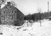 The Acacia trees in the foreground were planted by Mackenzie himself in 1824 and are still growing. It was here that the first issue of the Colonial Advocate was printed on May 18, 1824