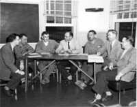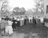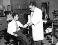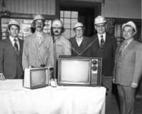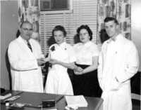 Dr. Warminton presents 5 year service awards to 3 members of medical staff - Left to right: Dr. R. G. Warminton, Miss P. Archer, Mrs. J. Pettes, and Dr. W. J. Martin