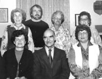 Bottom row, L to R, Ursula Bienzeisler (curator), Ted Lees (Chairman), Emma Chambers (Secetary-Treasurer). Top row, L to R, Rita Somerville, Fred Brunning Jr, Clara Ruch, Marjorie Ort. Photo taken in Willoughby Township Hall on Sodom Road.