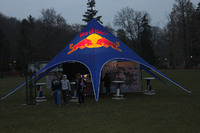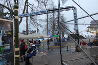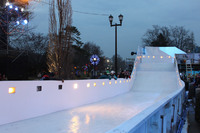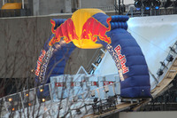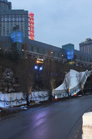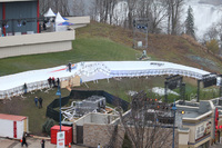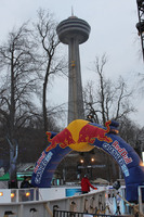 Food and beverage tents at the Red Bull Crashed Ice Event near the corner of River Road and Murray Street (Murray Hill). Winter Festival of Lights displays are visible in the background.
