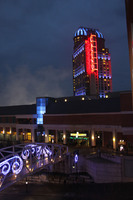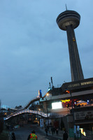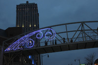 The pedestrian walkway across Murray Street (Murray Hill), illuminated for the Winter Festival of Lights. The Hilton Fallsview Hotel & Suites is visible in the background.