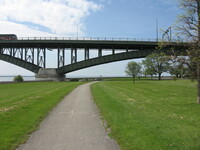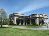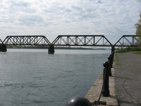 Plaque near the Toronto Power Plant : Niagara Falls Park and River Railway Powerhouse : The Niagara Falls Park and River Railway Powerhouse, build on this site in 1892, was the first hydraulic powerhouse to use water from the Canadian side of the Niagara River. It generated 2100 hp of direct current electricity for the electric railway. Power generation ceased in 1932 and the building was demolished in 1985.